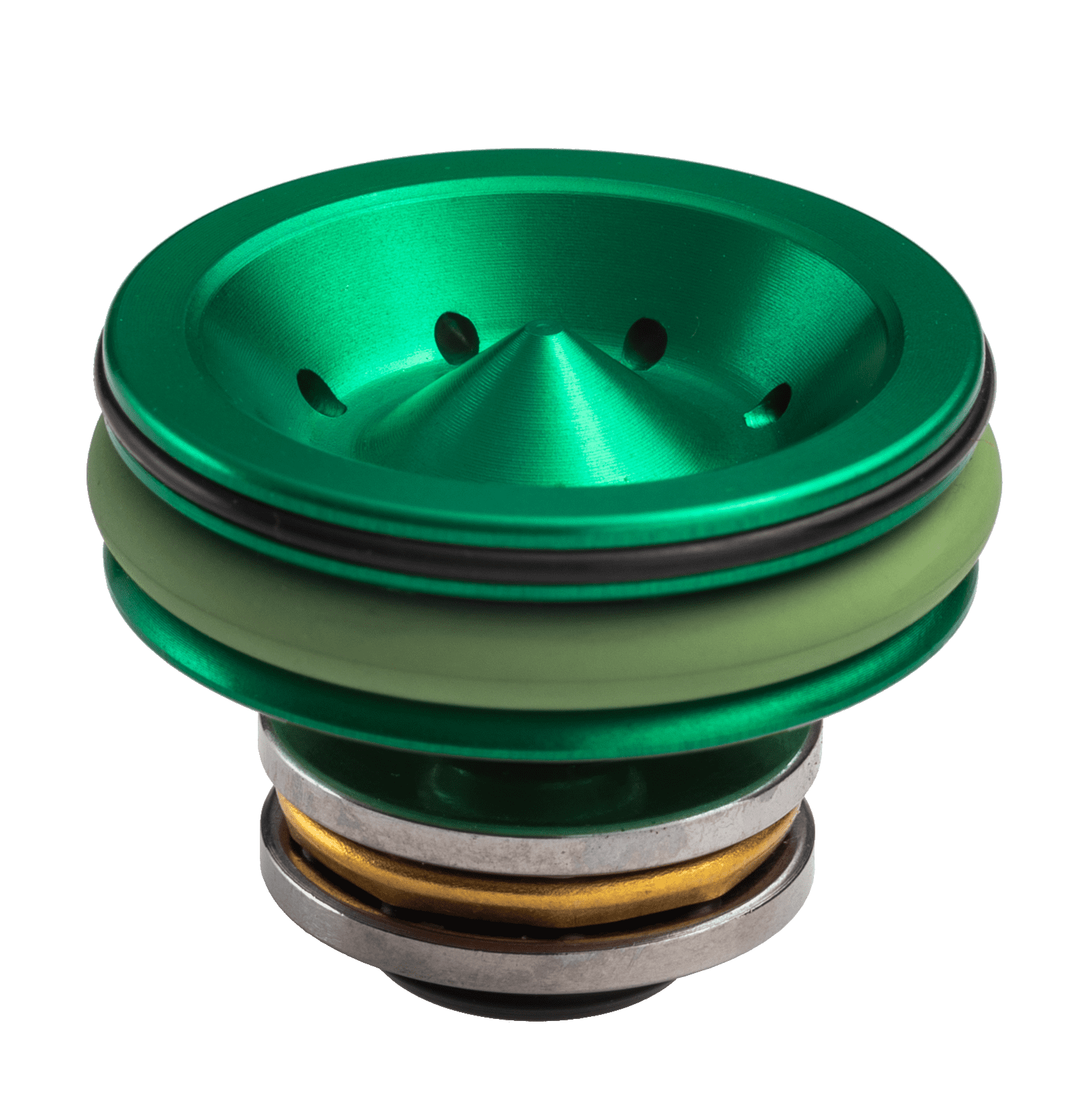 This piston head has ports on the front to push out the o-ring as it moves forwards, this ensures that all of the air in the cylinder is being pushed out to propel the BB.