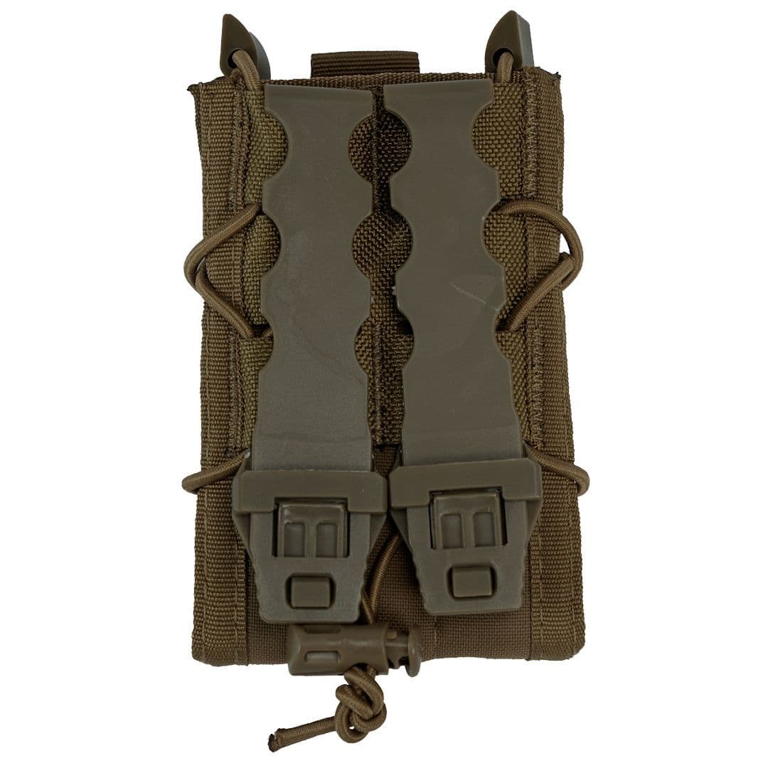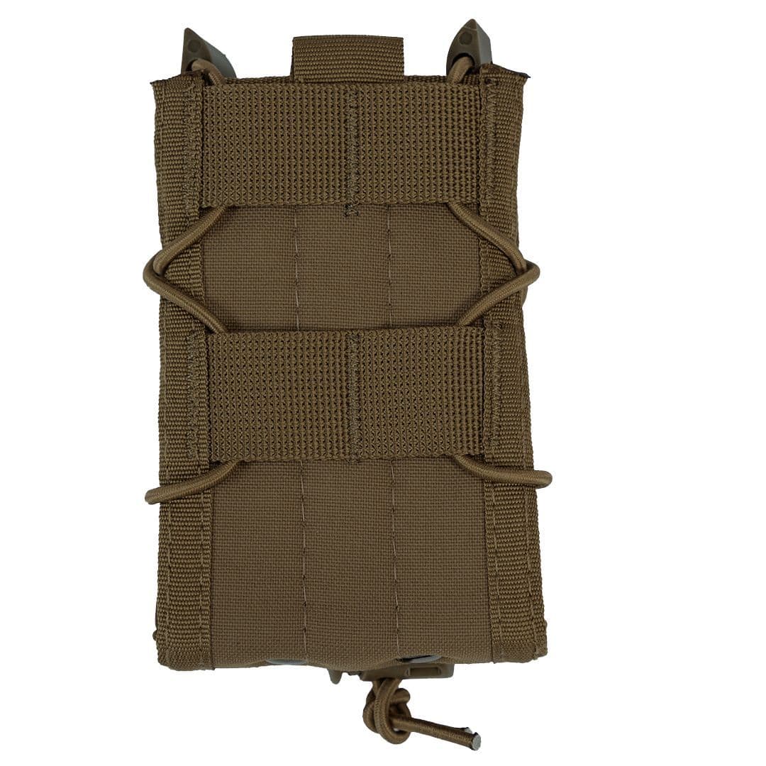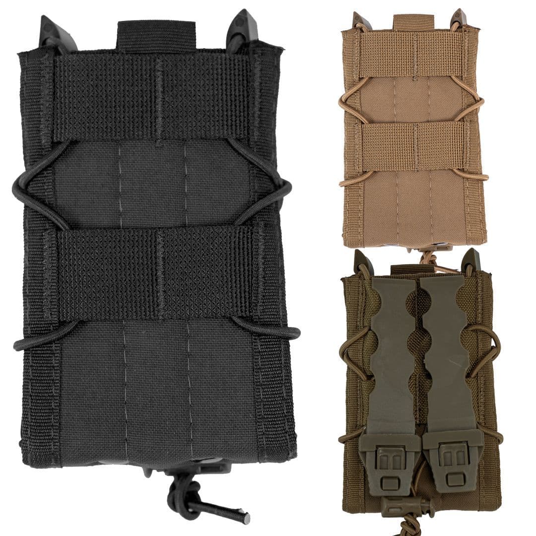 It can hold one rifle magazine securely and is compatible with most MOLLE systems.
